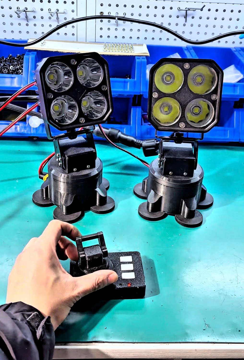 Wireless Precision Control Take command without leaving your seat. The custom-engineered motorized base offers a 180-degree horizontal sweep (Pan) and vertical adjustment (Tilt). Controlled by an ergonomic wireless joystick remote, you can aim the light exactly where you need it with zero latency. Whether scanning a field or lighting up a trail, you have complete directional control from up to 40 meters away.