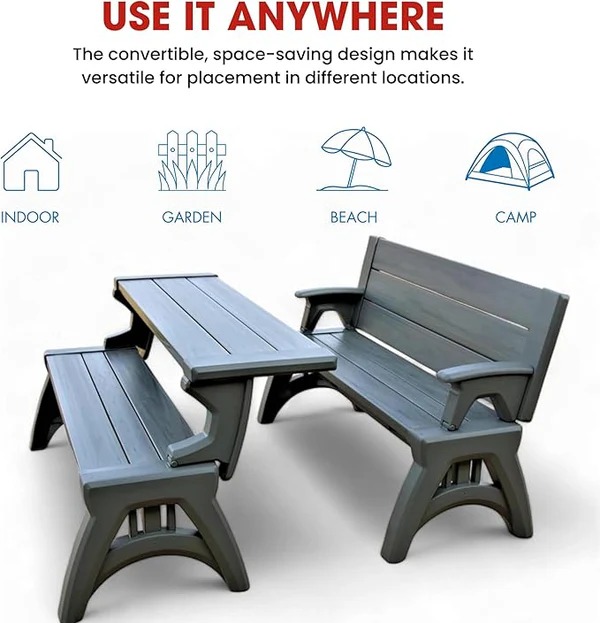2-in-1 Outdoor Bench & Picnic Table — Relax, dine, and transform. 🌿🍽️
