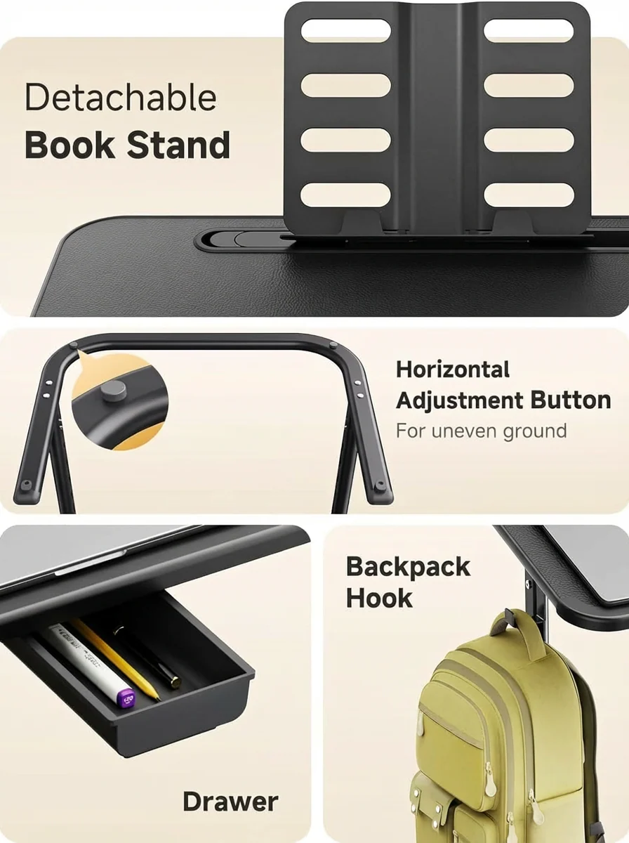 • Truly versatile: Use it as a laptop desk, TV tray, recliner table, or standing workstation — the adjustable height and tilt let you find the perfect angle fast.